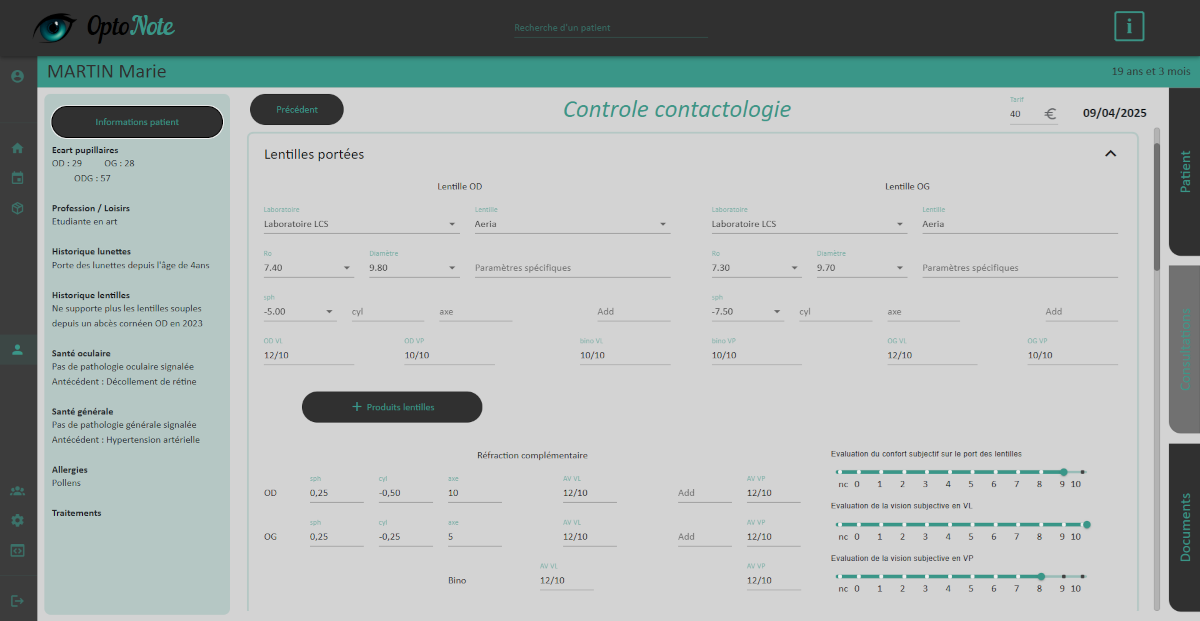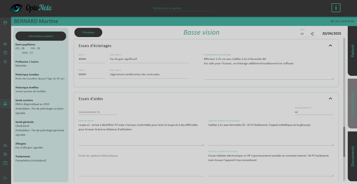Centralisez toutes vos observations optométriques, contactologiques et de basse vision dans des fiches précises et faciles à interpréter.