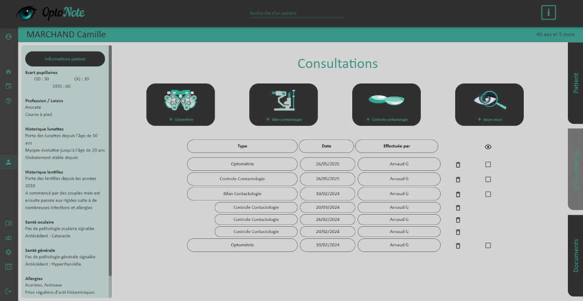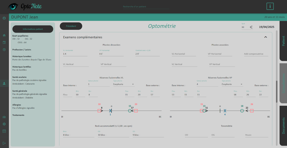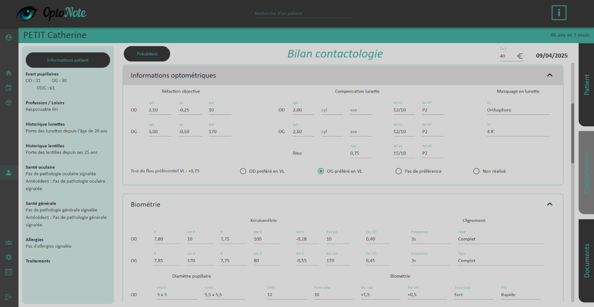OptoNote centralise vos outils dans une seule interface. Optométrie, contactologie, basse vision, suivi patient, agenda et génération de documents : chaque fonctionnalité est pensée pour s’adapter à votre pratique.